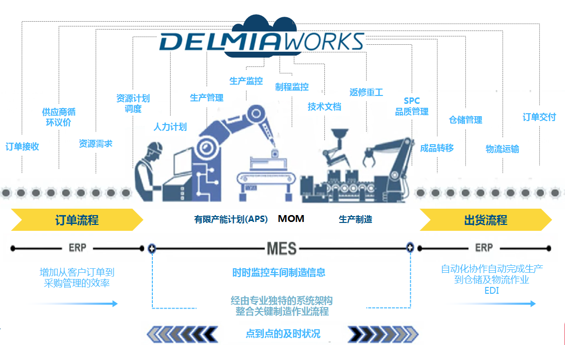 DELMIAWORKS是法國達索旗下品牌,助力制造業數字化轉型升級;從研發端到銷售、制造端再到生產現場端的全數字化,實現ERP與MES管理目標一致且完成統一調度高度協同,致力於推動世界級先進制造業進程,打造ERP與MES融合式解決方案。