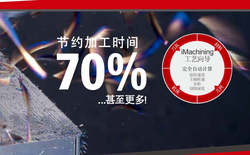 2. 獨有的、革命性的iMachining加工技術節約70%的加工時間,甚至更多,顯著提升刀具的使用壽命
