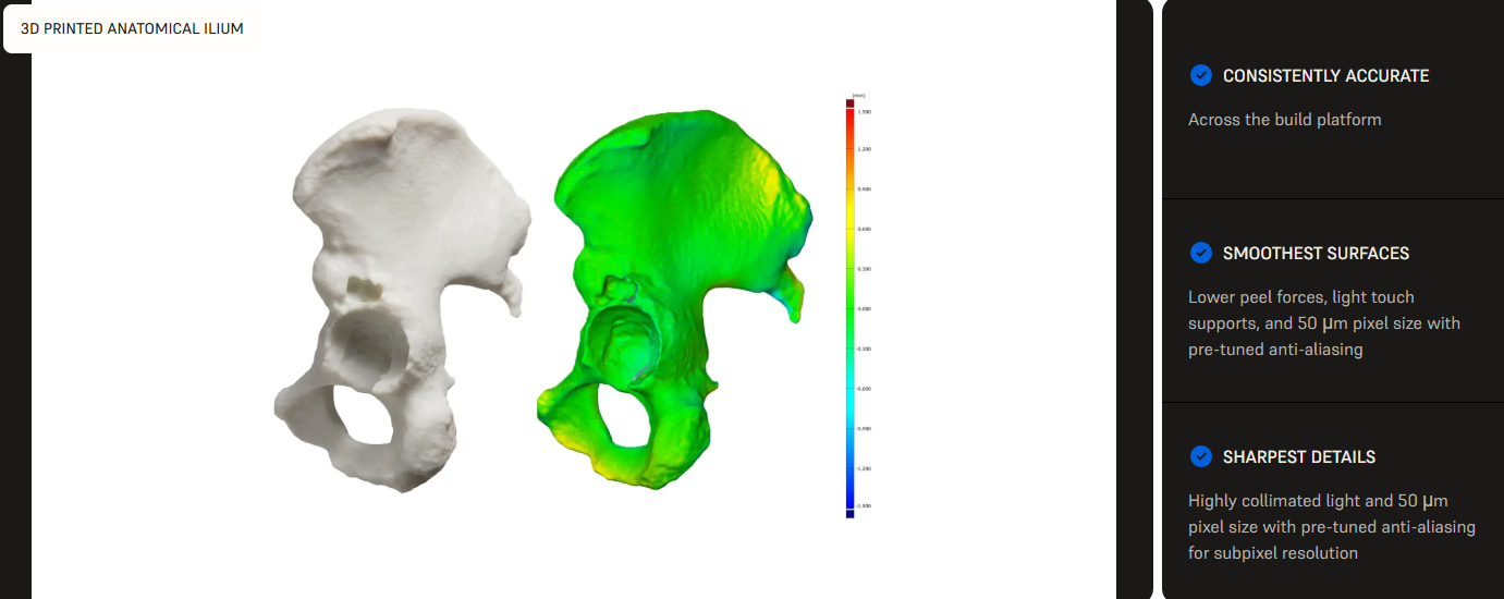 | 水平精度 | 50µm 亞像素分辨率的預調抗混疊 相對於 Form 3 系列,精細特征和銳利特征更出色 |