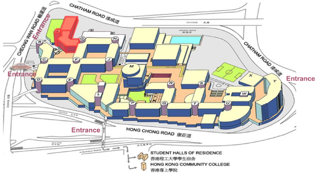 於香港理工大學正門(暢運道)下車